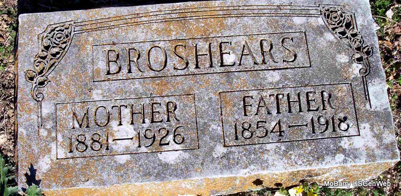 | BROSHEARS, Alice Virginia (FERGUSON) (SHIPMAN) (HITE) | Apr. 4, 1881 MO |