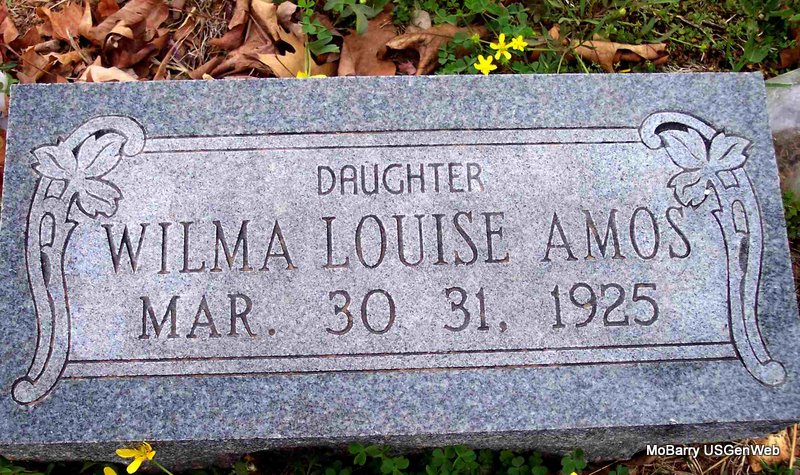 Inscription: "Daughter" - Research Note: Death Certificate gives born Mar. 3, 1925 and died Mar. 31, 1925. Daughter of William G. Amos born Purdy, Barry Co. MO and Bessie Ulmer. | Death Certificate Phyllis Long Photo Diana Cope |