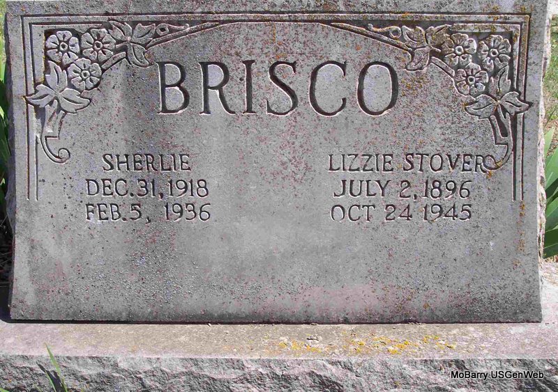 | BRISCO, Sherlie A. | Dec. 31, 1918 | Feb. 5, 1936 | SSW: Lizzie Stover - Research Note: Son of Mack Gilbert Brisco and Lizzie (Long) (Brisco) Stover. - Another Stone | Census Phyllis Long Photo Diana Cope |
