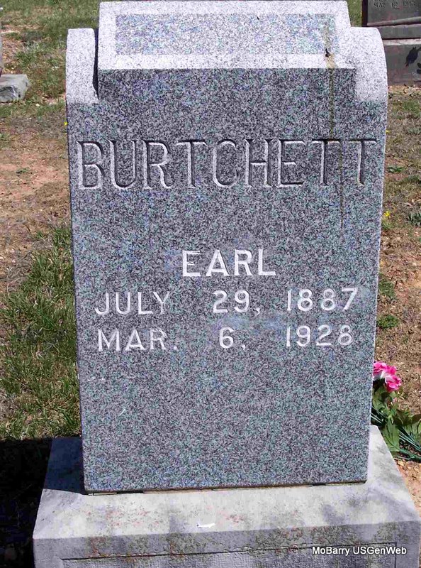 Research Note: He was a son of James Preston and Samantha Caroline (Long) Burchett. Mrs. E. E. Hankins of Purdy, MO was the informant on the death certificate. His wife was Hallie Jones. - Cassville Republican, Thursday, May 30, 1918 - Mrs. Hattie/Hallie Burchett and little son, George, are here on a visit during berry time. - August 18, 1910, Thursday, Cassville Republican - Pleasant Valley News: Earl Burchett is trying to sell his crop on the Sam Riddle farm, as he has an offer of work in Monett, which he thinks will pay better than farming. - Cassville Republican, Thursday, March 20, 1919 - Circuit Court - Twenty-six divorce Cases on Tuesday's Docket - Hattie Burchett vs. Earl Burchett, divorce decree. | Family Donna Cooper Death Certificate Online Newspapers Phyllis Long Photo Diana Cope |