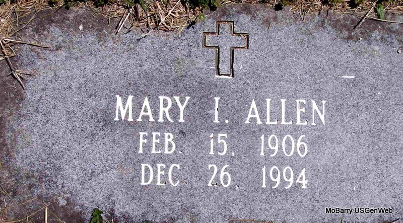 | ALLEN, Mary I. | Feb. 15, 1906 | Dec. 26, 1994 | No Data | Photo Diana Cope |