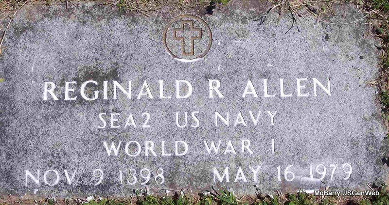 | ALLEN, Reginald R. | Nov. 9, 1898 | May 16, 1979 | Inscription: "SEA 2 US NAVY WORLD WAR I" | Photo Diana Cope |