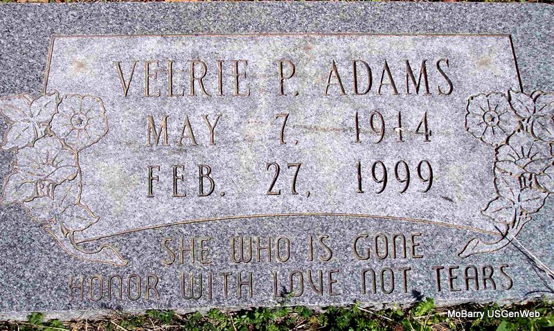 | ADAMS, Velrie Pearl (FLETCHER) (CARNES) (WILSON) (PHILLIPS) | May 7, 1914 Washburn, Barry Co., MO |
