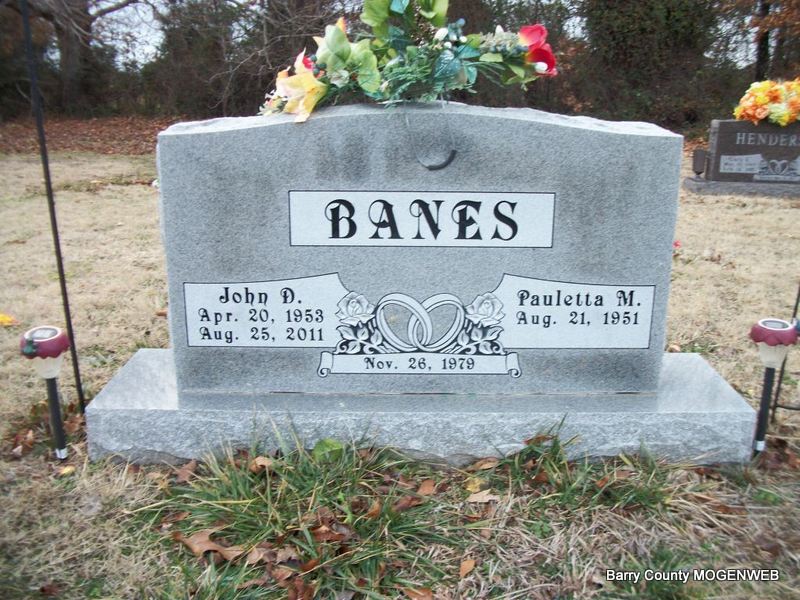 SSW: Pauletta M. - Inscription: "Nov. 26, 1979" - Research Note: He married Pauletta Eutsler Nov. 26, 1979. He was a member of the First Presbyterian Church in Monett and worked for Hydro-Aluminum in Monett for more than 40 years. He was preceded in death by his parents; and one brother, Gene Arthur. - John Douglas Banes, age 23, first married Delores Diana Maggard, age 18, on Dec. 31, 1976 in Barry Co., MO. | Lawrence Co. Record MO Marriage Records Phyllis Long Photo Diana Cope |