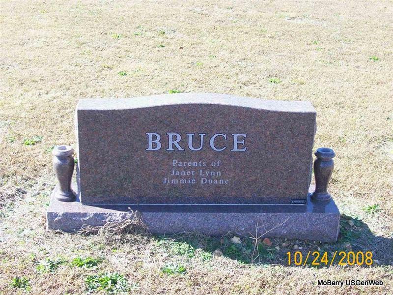 SSW: Georgene - Inscription Married Aug. 21, 1955" - Research Note: Son of Irvin W. Bruce and Lena Edie. He was united in marriage on August 21, 1955 in Cassville, Missouri to Georgene Gentry. He was a retired farmer, veteran of the United States Army and a member of the First Freewill Baptist Church in Monett. He was preceded in death by his parents: I.W. and Lena and two sisters: Ruth Andrews Palmer and Ruby Walls. - Back of Stone | Census Bennett-Wormington Funeral Home Phyllis Long Photo Jay Trace |