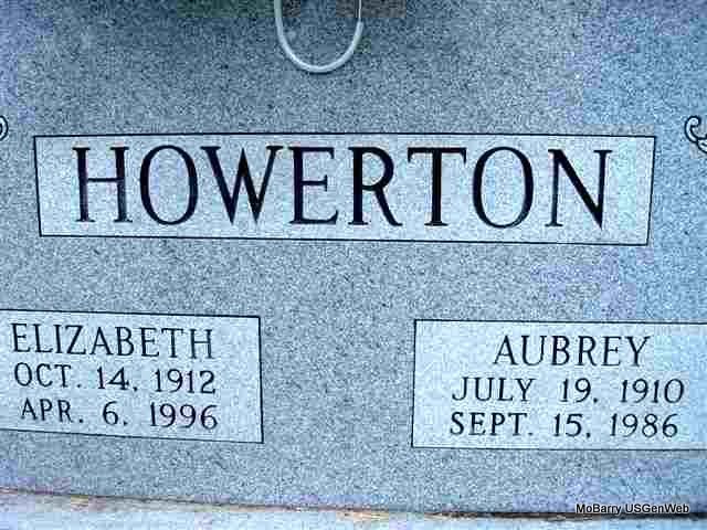 | HOWERTON, Audie John | Dec. 19, 1893 | Feb. 23, 1984 | SSW: Maude - Research Note: He was the son of Charter Howerton and Rutha Stephens. Audie Howerton, age 19, married Maude McCracken, age 17, on Aug. 26, 1913 in Barry Co., MO. - 1920 Census, Corsicana, Barry Co., MO - Audie Howerton, age 26, born MO, parents born MO; Maude, wife, age 24, born MO, parents born MO; Irene, daughter, age 5, born MO. | Census MO Marriage Records Phyllis Long Headstone Kay C. Morrow Photo Diana Cope |
