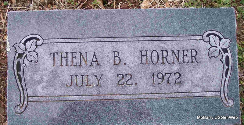 | HORNER, Thena B. | No Date | July 22, 1972 | Research Note: Daughter of Paul Milton Horner and Mary Dale McWilson. | Father's Obit Phyllis Long Photo Diana Cope |
