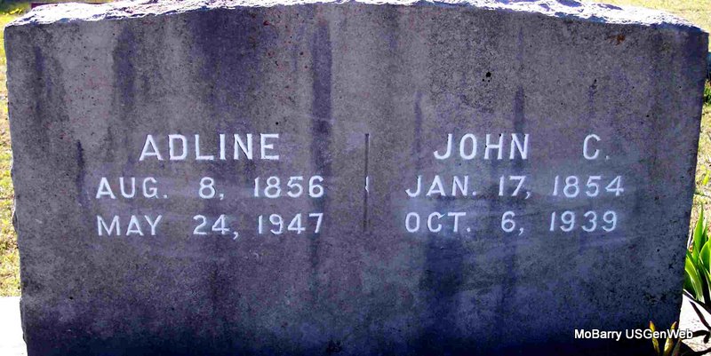 SSW: Rutha C. Howerton - Research Note: Name given on his death certificate was Carlis Charter Howerton. Wife was Ruth and he was the son of Rufus Howerton born TN and mother's maiden name was Fly (Emily Catherine) born TN. - Wheaton Journal, April 25, 1929 - Chart Howerton, highly respected farmer, died at his home east of Wheaton Saturday, April 20, of creeping paralysis. He was 62 years, 1 month and 7 days old. He was united in marriage to Ruth Stevens April 3, 1888. To this union four children were born, who are: Mrs. Ellis Fair (Mamie) of Osawatomie Kan., Aubry, Corum, and Audie Howerton of near Wheaton. He leaves besides his wife and children, two sisters, Mrs. Samantha Landsdown and Mrs. Sarah Rodgers of Purdy, and two brothers, Jack Howerton of Duenweg and Bill Howerton of Texas. Funeral services were held at New Church, conducted by Rev. W. E. Goodnight and burial made in the cemetery at that place. - 1910 Census, Shoal Creek, Barry Co., MO - Chart C. Howerton, age 42, born MO, parents born TN; Rutha, wife, age 42, mother of 4 children, 3 living, born MO, parents born TN; Mamie, daughter, age 20, born MO; Audie, son, age 16, born MO; Corum, son, age 12, born MO. - December 8, 1906, Saturday, Cassville Democrat - Chart Howerton was badly cut with an ax Tuesday, by the ax flying off of the handle and striking him in the hip, cutting a place 3 1/2 inches long and 2 1/2 inches deep. We are glad to hear that he is getting along nicely and that the wound is not a serious one. | Death Certificate Online Obit Online Newspapers Phyllis Long Headstone Kay C. Morrow Photo Diana Cope |