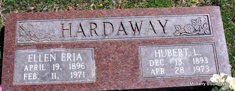 | HARDAWAY, Hubert Lester | Dec. 13, 1893 | Apr. 28, 1973 | SSW: Ellen Eria - Research Note: He was the son of Walter William Hardaway and Susan Livonia Bates. WWI Draft Reg. places him in Izard Co., AR. Hubert Hardaway, age 31 of Reeds Spring, Stone Co. MO, married Ellen Garner, age 28 of Calico Rock, Izard Co., AR, in Izard Co., AR on May 10, 1925. | AR Marriage Records WWI Draft Reg. Census Phyllis Long Photo Diana Cope |