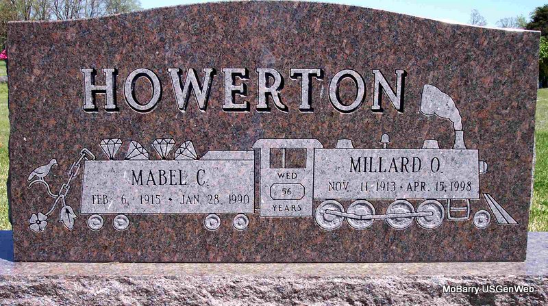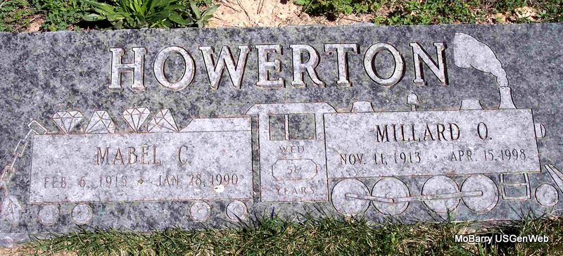 | HOWERTON, Millard Oscar | Nov. 11, 1913 | Apr. 15, 1998 | SSW: Mabel C. Howerton - Inscription: "Wed 56 Years" - Research Note: He was the son of Oscar Bert Howerton and Della Griggs. SSDI gives his last residence as Bloomfield, Essex Co., NJ. SSN issued in MO. - Another Photo - Another Photo | SSDI Census Phyllis Long Daughter Kay C. Morrow Photo Diana Cope |