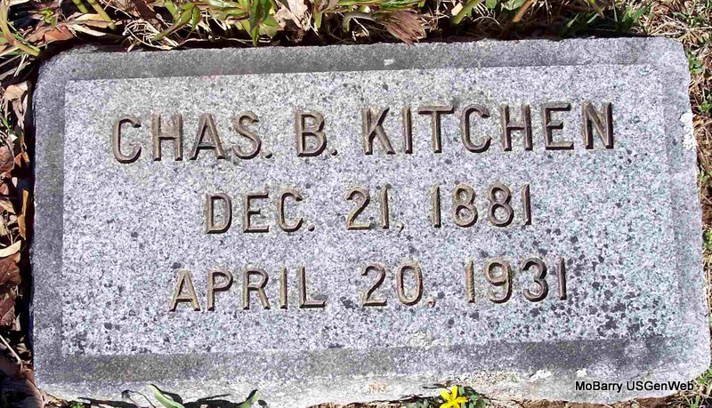 Research Note: His wife was Sarah A. and he was the son of Charles F. Kitchen born VA and Mary A. Hamilton born IN. He was a carpenter and engineer at a saw mill. Typhoid was the cause of death. His wife was the informant on the death certificate. - Cassville Republican, Aug. 28, 1919 - C. B. Kitchen visited his sister, Mrs. Joe England, at Cassville Sunday. | Death Certificate Online Newspapers Phyllis Long Photo Diana Cope |