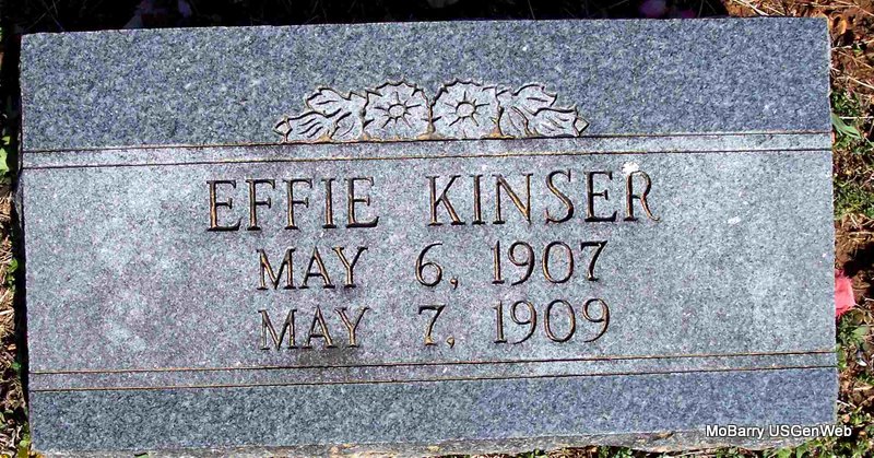 | KINSER, Effie | May 6, 1907 | May 7, 1909 | Research Note: Daughter of Richard W. Kinser and Maud Ray. | Note Phyllis Long Photo Diana Cope |