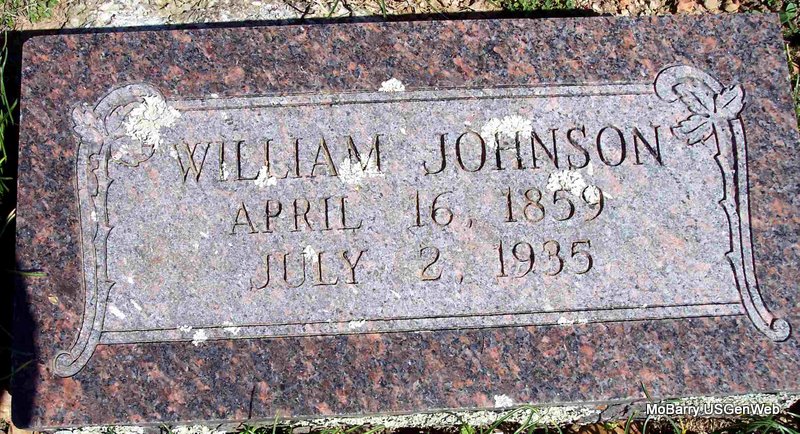 Research Note: His wife was named as Susan/Soula at the time of his death. He was a retired farmer and the son of Joseph Johnson and Belinda Wright. Bill Johnson of Purdy, MO was the informant on the death certificate. - His first wife was Martha A. Thrasher. - 1900 Census, Missouri, Barry, Shoal Creek, District 15 - Joseph R. Johnson, head, born May 1824 OH, age 76, married 51 years; Belinda, wife, born May 1830 OH, age 70, mother of 5 children, 1 living; William, son, born Apr. 1859 IA, age 41, widowed; Ross, grandson, born Oct. 1885 KS, age 14; Oscar, grandson, born Sept. 1887 KS, age 12; Lemuel, grandson, born Apr. 1892 MO, age 8. - William, age 41, married Soula A. Nickols, age 17, on May 10, 1901 in Barry Co., MO. M. C. Gray, guardian of Soula Almeda Nichols gave consent. Soula died in Stanislaus Co., CA, born Dec. 18, 1883 and died Nov. 12, 1966. | Death Certificate Census MO Marriage Records CA Death Index Phyllis Long Photo Diana Cope |
