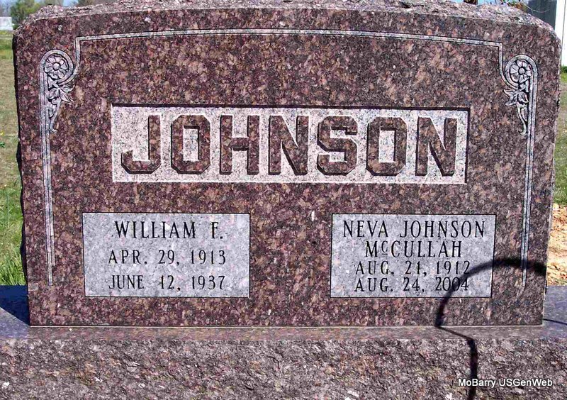 | JOHNSON, Neva Ireta (GENTRY) (McCULLAH) | Aug. 21, 1912 Butterfield, Barry Co., MO |