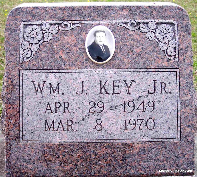 Research Note: He was killed in an auto accident on Hwy 86, 3 miles East of Eagle Rock, Barry Co., MO. Son of William Johnny Key, Sr. and Rowena Prier. He was a crew chief for Tyson Poultry Co. and resident of Rural Cassville, Barry Co., MO. His wife was Mary F. Whitcomb. Rowena Higgs of rural Exeter, Barry Co., MO was the informant on the death certificate. | Death Certificate Phyllis Long Photo Diana Cope |