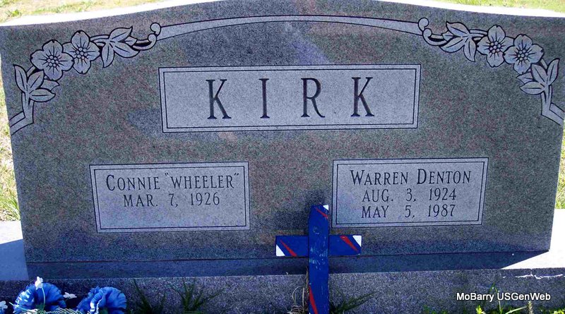 | KIRK, Warren Denton | Aug. 3, 1924 | May 5, 1987 | SSW: Connie - Research Note: Son of Craven C. Kirk and Bessie Mae Bufford. | Census Phyllis Long Photo Diana Cope |