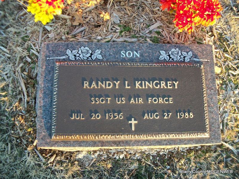 Research Note: Cassville, Barry Co., MO resident. He was the son of Sidney and Minnie (Reed) Kingrey. Subsequently graduating high school Ray enlisted in the United States Air Force where he served his country proudly. On December 13, 1952, he was united in marriage to Barbara Jean Moore in Columbus, Ohio; she preceded him in death on January 17, 2021. He farmed, enjoyed raising horses, and was over the maintenance department for the Purdy School district and retired after many years. In addition to his parents and wife, Barbara, Ray was preceded in death by his son, Randy Kingrey; and two brothers, Robert Kingrey and Ronnie Kingrey. | White Funeral Home Phyllis Long |