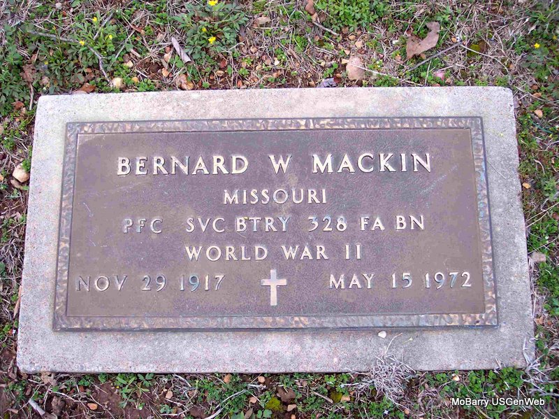 SSW: Lillie Vivian - Research Note: He was the son of Charles Commodore Mackin and Lola Babe Thomas. - Military Stone - Inscription: "PFC SVC BTRY FA BN WORLD WAR II" | Census Phyllis Long Photo Diana Cope |