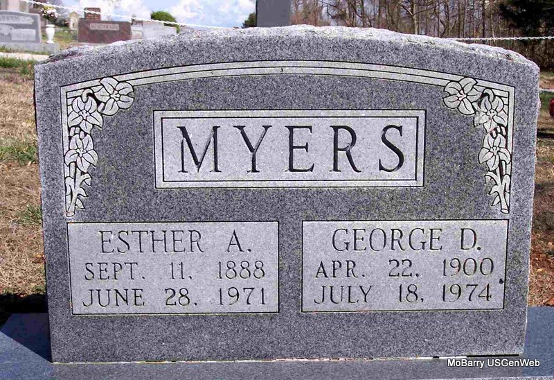 | MYERS, Esther A. | Sept. 11, 1888 | June 28, 1971 | SSW: George D. | Photo Diana Cope |