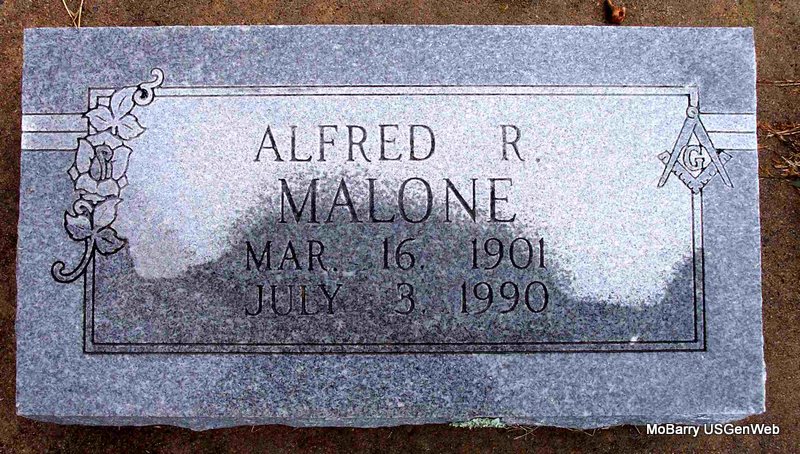 Research Note: He was the son of Albert Malone and Josephine Morris according to OH Birth Records. Census lists Gertrude M. which was his stepmother. - 1930 Census, Missouri, Barry, Liberty, District 12: Albert M. Malone, age 61, born PA, parents born PA; Gertrude M., wife, age 51, born OH, father born NC, mother PA; A. Raymond, son, age 28, born OH; Melba, daughter, age 24, born OH, public school teacher. - Still single in the 1940 census. | Census OH Birth Records Phyllis Long Photo Diana Cope |