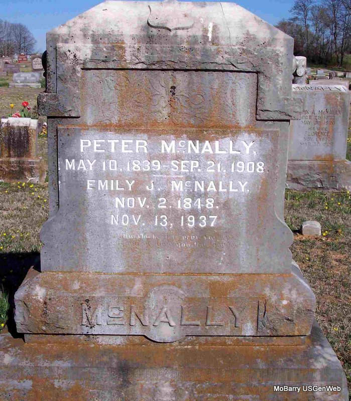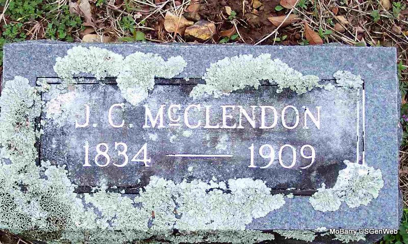 Research Note: He was the son of David McClendon and Susan Mayse. His first wife was Rachel Britton, died in 1903 MO. His second wife was Mary Elizabeth (Riddle) (Reed) (McClendon) (Hite) buried at Mt. Pleasant under the Hite name. Married on July 5, 1907 in Barry Co., MO. - Cassville Democrat, March 20, 1909 - Jacob McClendon of near Purdy, died March 5th, 1909, of la grippe, age 76 years. The remains were buried on the 7th at Mt. Pleasant Cemetery. Services were conducted by Rev. Mark Combs. He left a wife and five children. Those that knew him testify that he was a good man. | Online Obit MO Marriage Records Phyllis Long Photo Diana Cope |