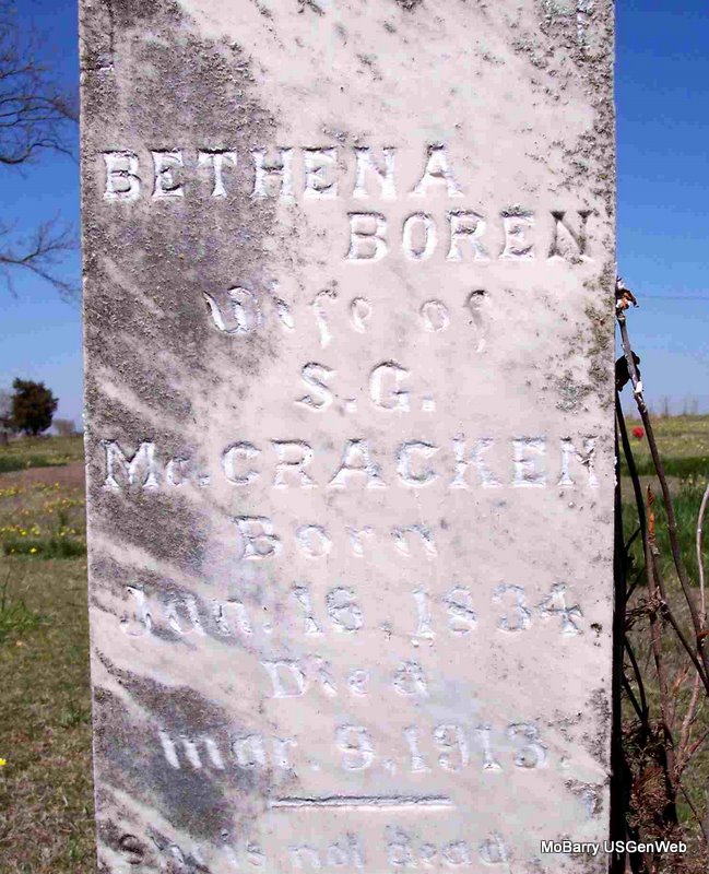 | MCCRACKEN, Bethena (BOREN) | Jan. 16, 1834 TN |