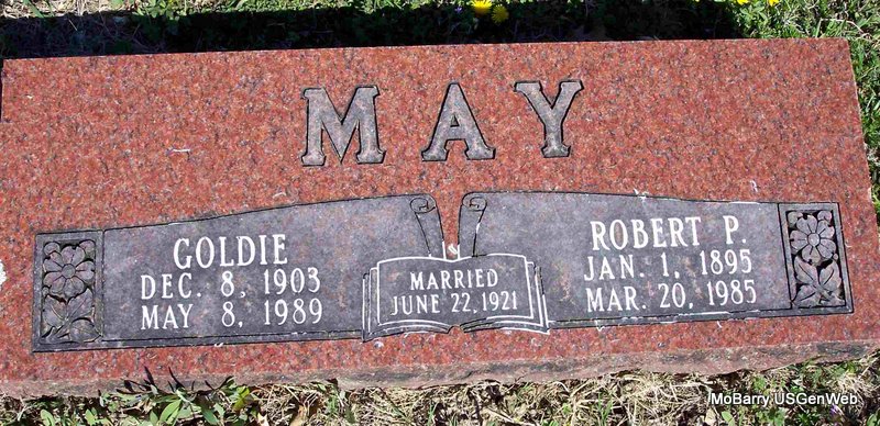 SSW: Goldie - Inscription: "Married June 22, 1921"- Research Note: Son of Dan May and Laura (Robison) May. - Another Photo - Military Stone - Inscription: "PFC US ARMY WORLD WAR II" | Descendant Joy Guentert Photo Darla Ball Marbut Photo Diana Cope |