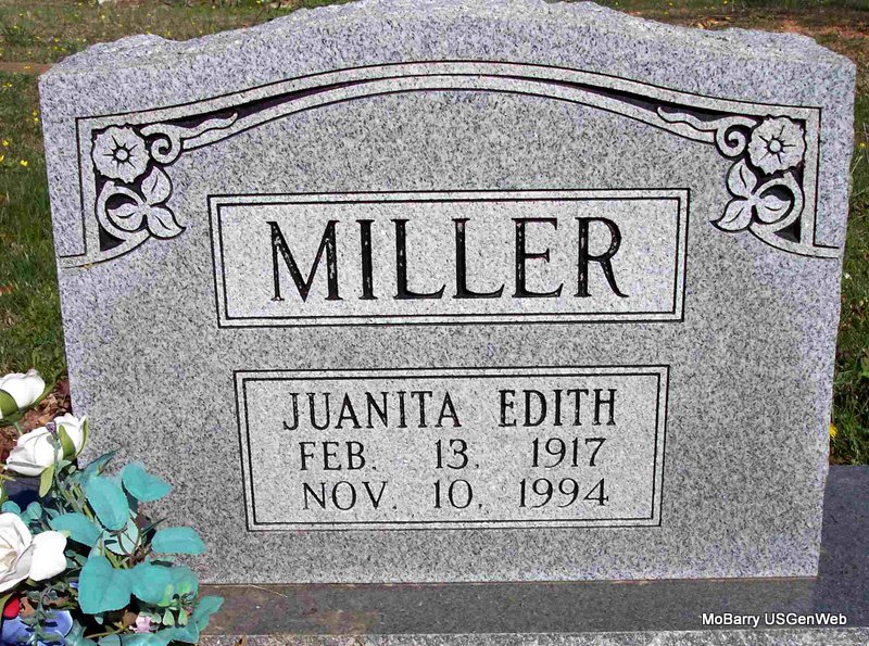 | MILLER, Juanita Edith (HALL) | Feb. 13, 1917 Mineral Springs, Barry Co., MO |