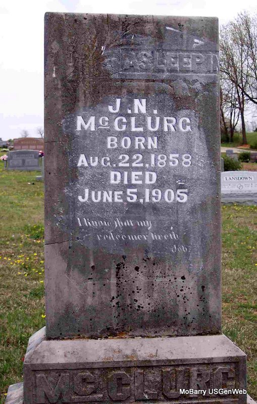 Research Note: He was the son of John W. McClurg and Harriet Fear. His wife was Emma E. (Webb) (Meek) (McClurg) Brown. Jasper N. McClurg married Emma E. Webb on Sept. 8, 1881 in Boone Co., IN. | IN Marriage Index Phyllis Long Photo Diana Cope |