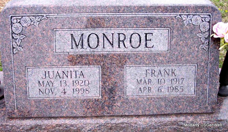 | MONROE, Frank | Mar. 10, 1917 | Apr. 6, 1985 | SSW: Juanita - Research Note: He was the son of Thomas Calvin Monroe and Bertha Wasson. | Census Phyllis Long Photo Diana Cope |