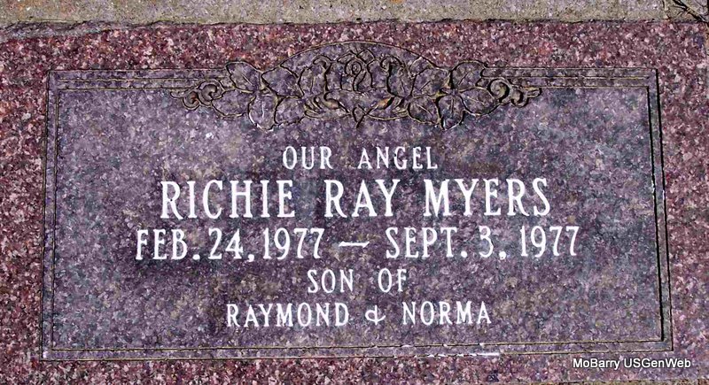 | MYERS, Richie Ray | Feb. 24, 1977 | Sept. 3, 1977 | Inscription: "Our Angel - Son of Raymond and Norma" | Photo Diana Cope |