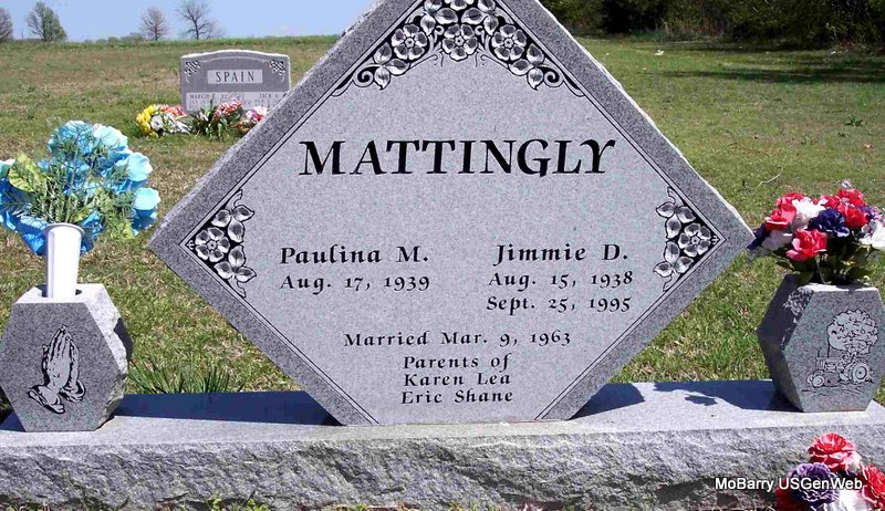 SSW: Jimmie D. - Inscription: "March 9, 1963" - Research Note: She was the daughter of Bert and Ethel Bea (Simpson) Lansdown. Married Jimmie Dale Mattingly on March 9, 1963 in Monett, Barry County, MO. Paulina was a homemaker, a member of the Community Faith Chapel in Cassville and a Cassville High School graduate. Survivors include one son, one daughter, one brother, one sister and two grandchildren. | Bennett-Wormington Funeral Home Phyllis Long Photo Diana Cope |