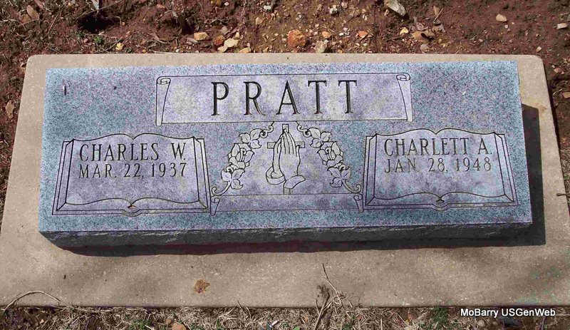 SSW: Charlett Ann - Research Note: Purdy, Barry Co., MO resident. He was the son of John Wesley and Ida Minnie (Jones) Pratt. He was drafted into the United States Army where he served his country proudly. On June 7, 1966, he was united in marriage to Charlett Terry in Grandview, Missouri; she preceded him in death on November 14, 2014. In addition to his parents and wife, Charles was preceded in death by three brothers, Gerald Pratt, James Pratt, and Johnny Pratt; three sisters, Martha Richardson, Geraldean Smith, and Pauline Caywood; one brother-in-law, Willard Terry; and one sister-in-law, Martha Guthrie. No services are scheduled at this time. Cremation arrangements are under the direction of the White Funeral Home and Crematory, Cassville, Missouri. | White Funeral Home Phyllis Long Photo Diana Cope |