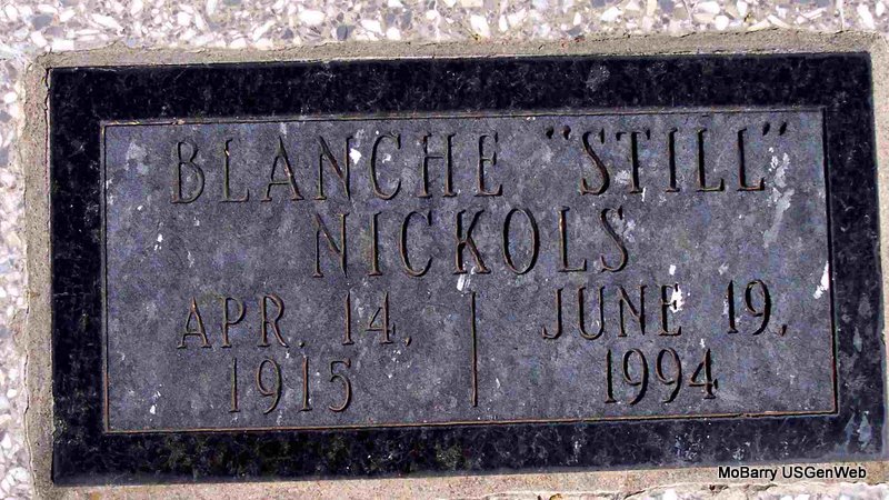 | NICKOLS, Blanche Verda (STILL) | Apr. 14, 1915 Barry Co., MO |