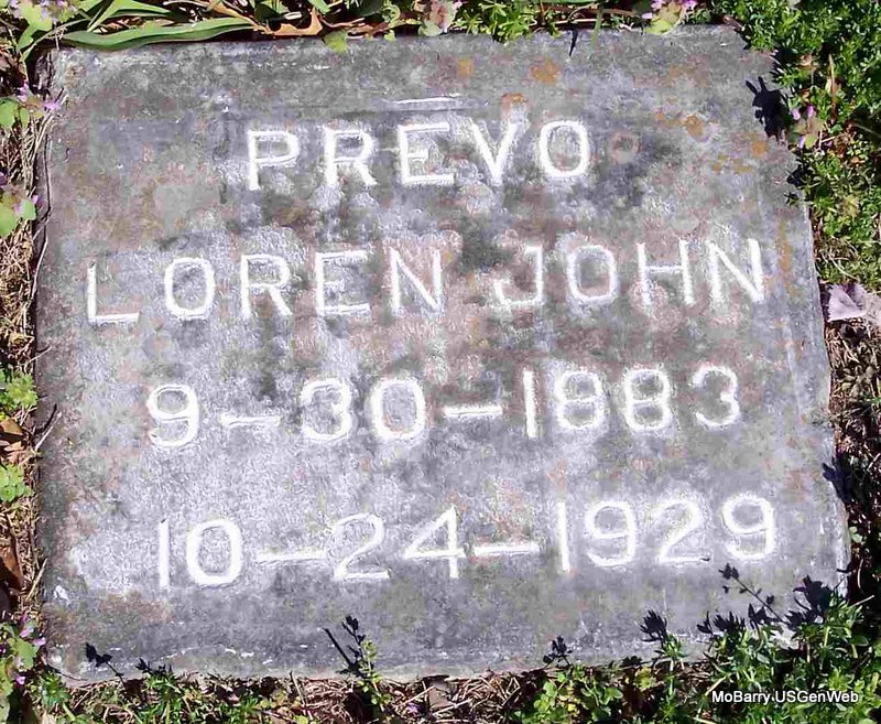 | PREVO, Loren John | Sept. 30, 1883 | Oct. 24, 1929 | Research Note: He was the son of Manford Prevo and Margaret Davis. His wife was Sussie Leona Waltrip. | Census Phyllis Long Photo Diana Cope |