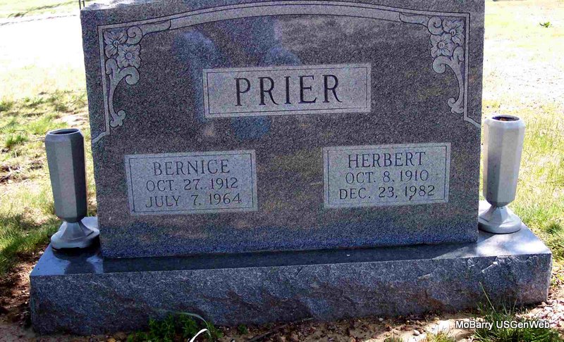 | PRIER, Herbert Thomas | Oct. 8, 1910 | Dec. 23, 1982 | SSW: Bernice - Research Note: He was the son of William R. Prier and Blanch Ella Mackey. | Census Phyllis Long Photo Diana Cope |