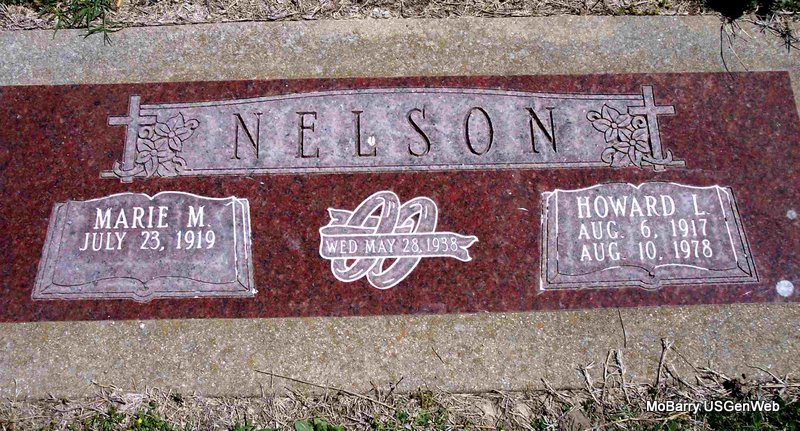 | NELSON, Howard L. | Aug. 6, 1917 | Aug. 10, 1978 | SSW: Marie M. - Inscription: "Married May 28, 1938" - Research Note: He was the son of Acie V. Nelson and his wife Pearl E. Gurley. | Census Phyllis Long Photo Diana Cope |