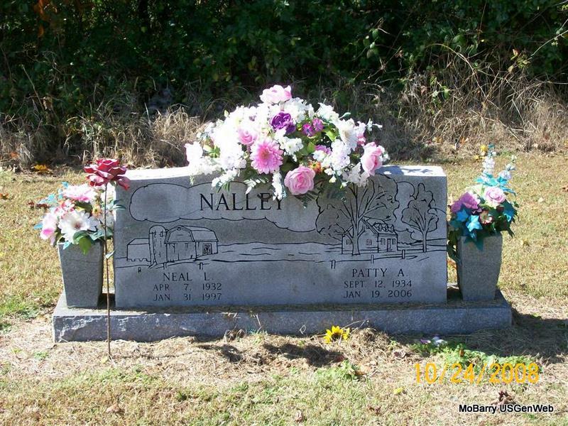 SSW: Neal L. - Research Note: She was the daughter of Lorene Pennell. When she was 7 years old Lorene married Blaine Ray and moved to Olathe, Kan. Patty lived on and off with W.H. (Burg) and Vida Pennell, attending school in Olathe and Butterfield. On December 1, 1951, Patty married Neal L. Nalley at Olathe, Kansas, Neal preceded her in death in January 1997. This union produced 4 children. Patty worked many years as a proofreader in Kansas City, MO. Retiring from Denton Community Hospital as food supervisor in 1989. Arrangements were under direction of Mulkey-Mason Funeral Home, Denton, Texas. - Another Photo - Another Photo | Monett Times Phyllis Long Photos Diana Cope Photo Jay Trace |