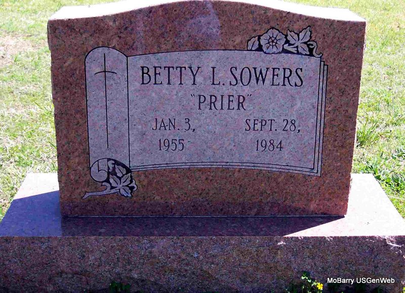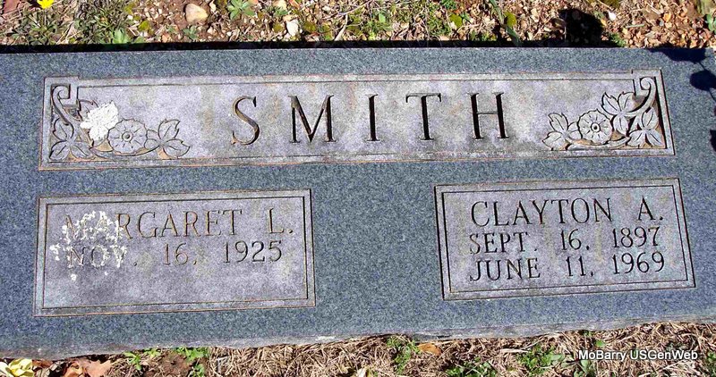 | SWAFFER, Margaret D. Loudean | Aug. 20, 1928 | Feb. 1, 1929 | Inscription: "Dau. of DeWitt and Verna Mae - Our Darling" - Research Note: Cassville Democrat, Mar. 1, 1929 - At Rest - Margaret D. Loudene, infant daughter of Mr. and Mrs. Dewitt Swaffar was born on Aug. 20, 1928, died Feb. 21, 1929, age 6 months, 1 day, of pneumonia. Margaret was sick only 4 1-2 hours and all that loving hands could do was done. The funeral was preached at Mount Pleasant, Feb. 22, by Bro. Kelly and the little baby laid to rest near by. She leaves to mourn her early death, her sorrowing parents, and grandparents, Mr. and Mrs. J. R. Swaffer and Rev. and Mrs. Row Prier, aunts, uncles and host of relatives and friends. But their loss is Heaven’s gain. May God bless and comfort the bereaved ones. "The little white Casket has been to our door, and when it left it bore the form of our darling, who will see no more. How our hearts are aching, there's none but God knows. The sun seems less bright, since her little face was hidden from our sight. She was too pure and fair for this old world, and so the Savior took her under his care." | Online Obit Phyllis Long Photo Diana Cope |