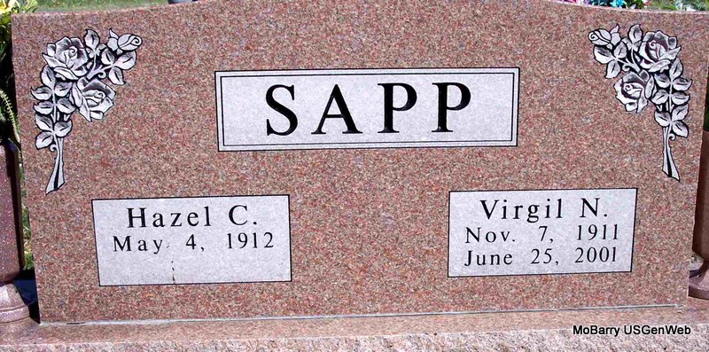 | SAPP, Hazel Columbia (WARREN) | May 4, 1912 | No Date | SSW: Virgil N. - Research Note: Hazel Warren, age 22, married Virgil N. Sapp, age 23, both of Wheaton, Barry Co., MO on Apr. 6, 1935 in Washington Co., AR. Daughter of Jesse and Florence Warren. | AR Marriage Records Phyllis Long Headstone Mary Lou Adams Photo Diana Cope |