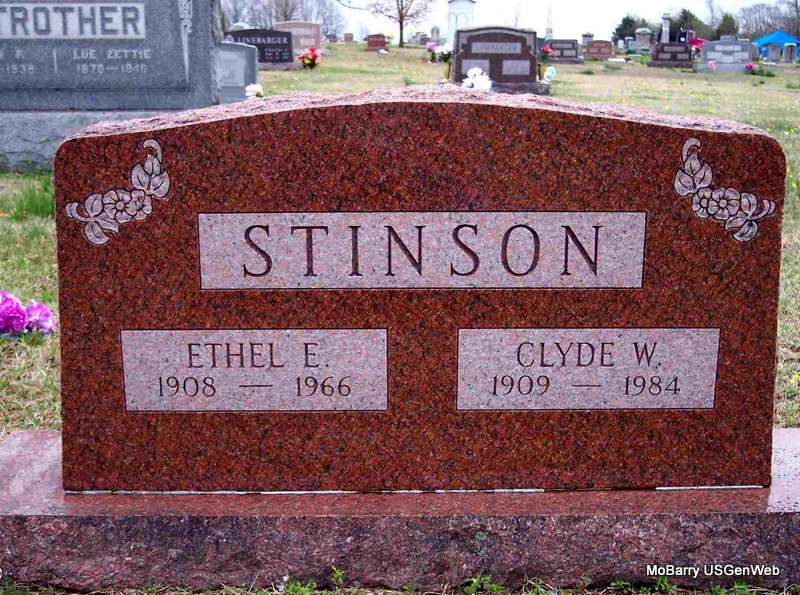 SSW: Ethel E. - Research Note: He was the son of Robert W. Stinson and Mattie Cahill. Clyde Stinson, age 22 married Ethel E. Wheeler, age 22, on May 16, 1931 in Kansas City, Jackson Co., MO. SSDI gives his last residence as Nashville, Davidson Co., TN. | MO Marriage Records SSDI Census Phyllis Long Photo Diana Cope |