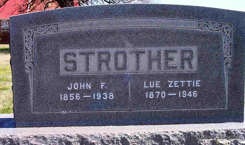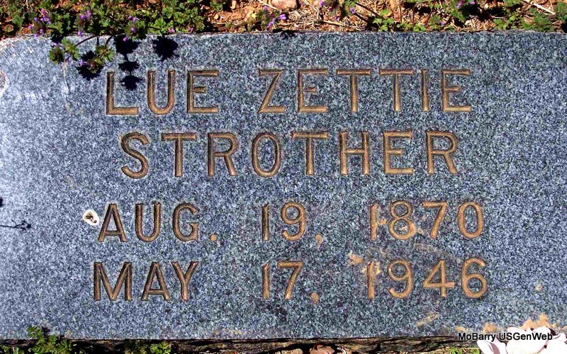 SSW: Lue Zettie - Research Note: His wife was Lue Zettie aka Nancy Lieuzetha Higgs. He was the son of Samuel P. Strother and Mariah Louisa Sooter. John, age 34, married Zettie Higgs, age 20, on Feb. 25, 1892 in Barry Co., MO. - 1860 Census, Shoal Creek, Barry, Missouri - Samuel P. Strother age 37, born MO; Mariah, age 35, born TN; Julia A. (Howerton), age 16, born MO; William J. (Howerton), age 13, born MO; Elizabeth Sarah (Howerton), age 9, born MO; James Walter, age 7, born MO; Edward Marion, age 4, born MO; John French, age 3; Madison Monroe, age 1, born MO. - Another Stone | MO Marriage Records Census AR Death Index Phyllis Long Photo Diana Cope |