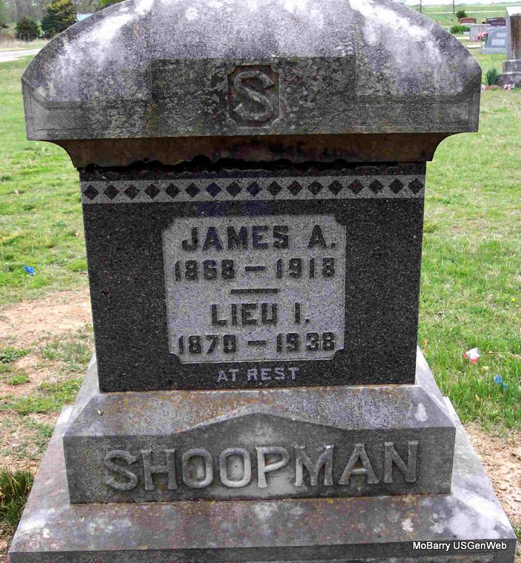 SSW: Lula M. - Research Note: He was the son of Samuel P. Strother and Mariah Louisa Sooter. - 1860 Census, Shoal Creek, Barry, Missouri - Samuel P. Strother age 37, born MO; Mariah, age 35, born TN; Julia A. (Howerton), age 16, born MO; William J. (Howerton), age 13, born MO; Elizabeth Sarah (Howerton), age 9, born MO; James Walter, age 7, born MO; Edward Marion, age 4, born MO; John French, age 3; Madison Monroe, age 1, born MO. - The death certificate says he was widowed twice and his wife's name was given as Louisa. His mother was named as Minerva (Mariah) Howerton. Howerton was her first husband's name, Sooter her maiden name. Arthur Strother of Purdy, MO was the informant on the death certificate. - Cassville Democrat, March 13, 1920 - Press Hilton has charge of the store, he bought of Mon Strother. We welcome him to our town. | Death Certificate Census Online Newspapers Phyllis Long Photo Diana Cope |
