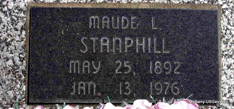 | STANPHILL, Maude L. (COLBURN) | May 25, 1892 | Jan. 13, 1976 | Research Note: SSDI gives her last address as Pierce City, Lawrence Co., MO. Wife of Charles Andrew Stanphill. Maiden name from her son Jack's obit who is buried at Sparks Cemetery. | SSDI Census Phyllis Long Photo Diana Cope |
