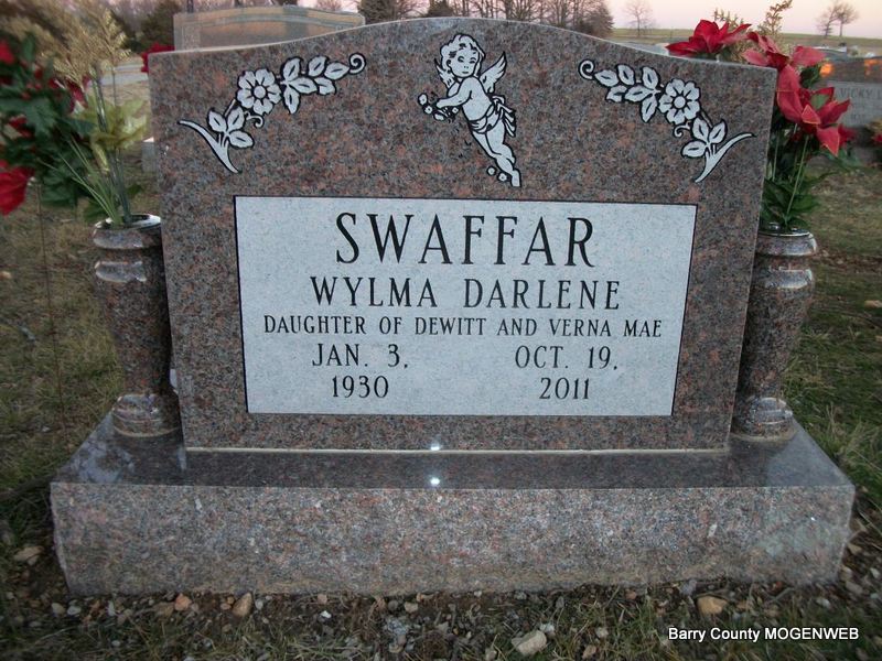 | SWAFFAR, Wylma Darlene | Jan. 3, 1930 Purdy, Barry Co., MO |