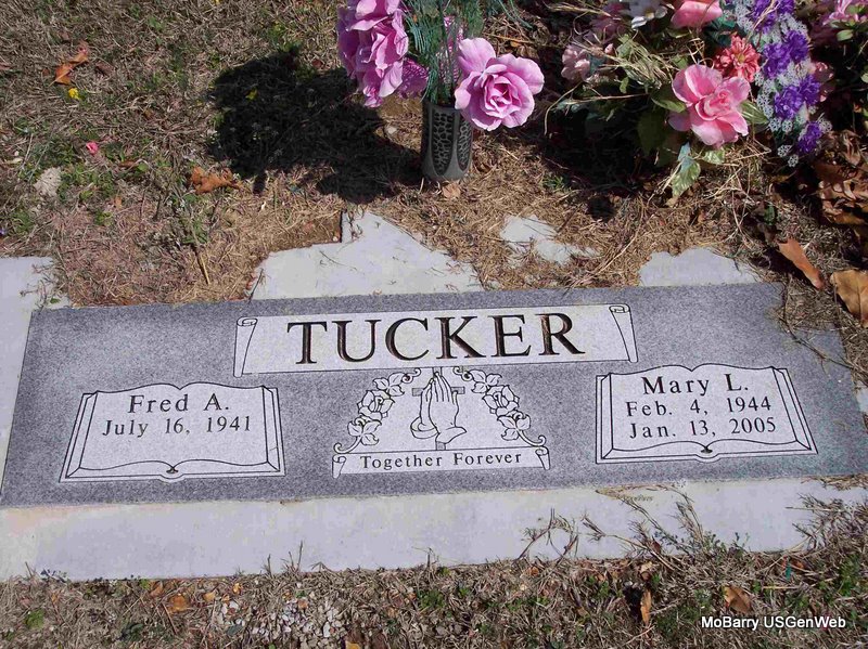 SSW: Fred A. - Research Note: Preceded in death by her father, Roy Cliffton Bradley; and one son, Chuck, in 1996. - Donna's Note: Mary Lynn Tucker, age 60, of Purdy, died January 13, 2003, at Cox Medical Center South of Springfield. She was born February 4, 1944, in Cassville. She was a graduate of Cassville High School. She was a data processor for Miracle Recreation Co., for four years. She married Fred Tucker on September 3, 1961, in Riverside, CA. She was preceded in death by her father, Roy C. Bradley; and one son, Chuck, in 1996. - Her mother was Lola Ava Brown, both parents buried at Mt. Pleasant Cemetery. - Another Photo | Monett Times Jan 17, 2005 Mary Homesley Monett Times Donna Cooper Headstone Cheryl Photos Diana Cope |