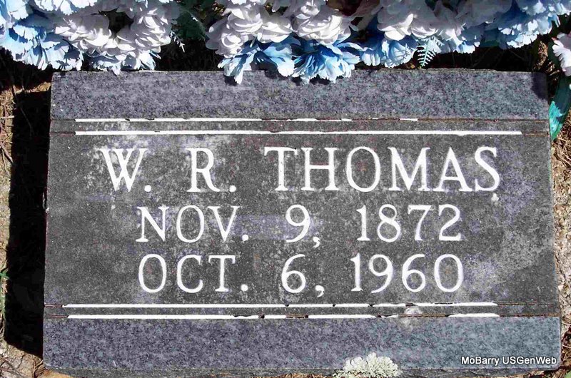 Research Note: He was widowed and a farmer. Son of James Lafayette Thomas and Jemima Harvill born Christian Co., MO. Riley Thomas of Purdy, MO was the informant on the death certificate. He was struck by an automobile while walking on a highway in Butterfield, MO. - Possible wives: October 10, 1908, Saturday, Cassville Democrat - Marriage Licenses: Geo. Thomas and Hattie McQueen, Exeter. - November 28, 1908, Saturday, Cassville Democrat - Independence News: Married Sunday, Nov. 14, by Squire Sallee at his residence, in Liberty township, George Thomas and Hattie McQueen of near El Paso. We extend congratulations. - 1920 Census, his wife is Caroline L. age 39, George, age 41, with father Lafette, age 73. 1930 Census, his wife is Bertha (Bertha Matilda Henson) with step-children Brown. Bertha died in 1931 and is buried at Calton Cemetery. | Death Certificate Online Newspapers Phyllis Long |