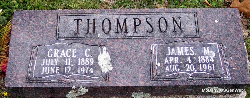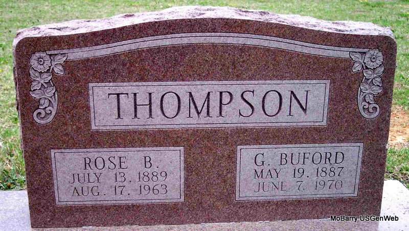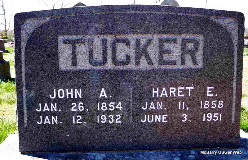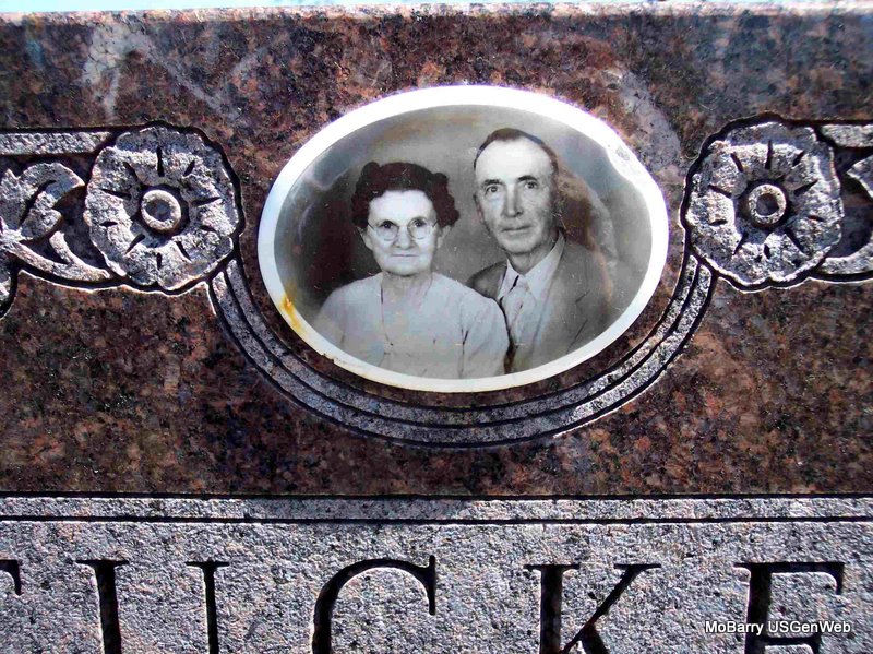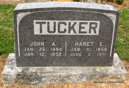 SSW: James Elmer Tucker - Inscription: "Married June 19, 1898" - Research Note: Has a picture of them both on the stone. She was born January 2, 1880, near Exeter and had resided most of her life in Barry County. She was a member of W.P.F.A., Cassville. Surviving are three sons, two daughters, 19 grandchildren, 54 great-grandchildren, 51 great-great-grandchildren, three great-great-great-grandchildren. She was the daughter of John Marion Davidson and Mary Cornelia Neill. - April 14, 1917, Saturday, Cassville Democrat - County News: Miss Naomi, daughter of Mr. and Mrs. Elmer Tucker of near Exeter, has been visiting her grandparents, Mr. and Mrs. John M. Davidson at Wheaton. - August 18, 1917, Saturday, Cassville Democrat - Mrs. Elmer Tucker and children of near Exeter visited her parents Mr. and Mrs. J. M. Davidson and family her last week. - Another Photo - Another Photo | Obit Online Newspapers Phyllis Long Headstone Cheryl Photo Diana Cope |