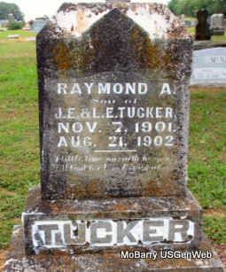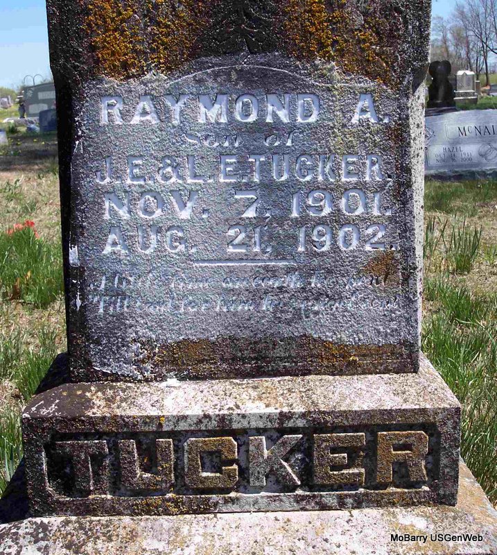 | TUCKER, Raymond A. | Nov. 7, 1901 | Aug. 21, 1902 | Inscription: "Son of James Elmer and Lena Eliza (Davidson) Tucker" - Another Photo | Headstone Cheryl Photo Diana Cope |