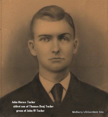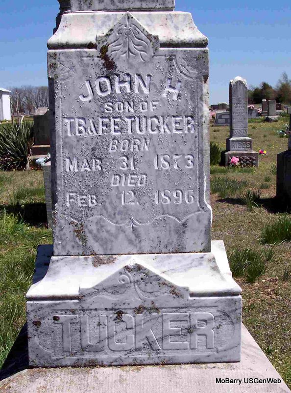 | TUCKER, John Horace | Mar. 31, 1873 | Feb. 12, 1896 | Inscription: "John H. Tucker - Son of T. B. and F. E. Tucker" - Research Note: Son of Thomas Benjamin Tucker and Frances Elizabeth Goostree. - Photo of John | Note Phyllis Long Headstone Cheryl Photo Diana Cope |